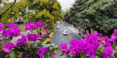 校长群骑,凌风掣、势吞苍莽。游海埂、喧阗人织,景随人往。福保玫瑰凝浪漫,小三亚光融碧浪。踱宝海、绿道韵悠悠,神思旷。 熏衣紫,藏清旷;斗南彩,铺宏章。跨七桥莺舞,草色飞扬。卧龙古村网红聚,捞鱼河景犹